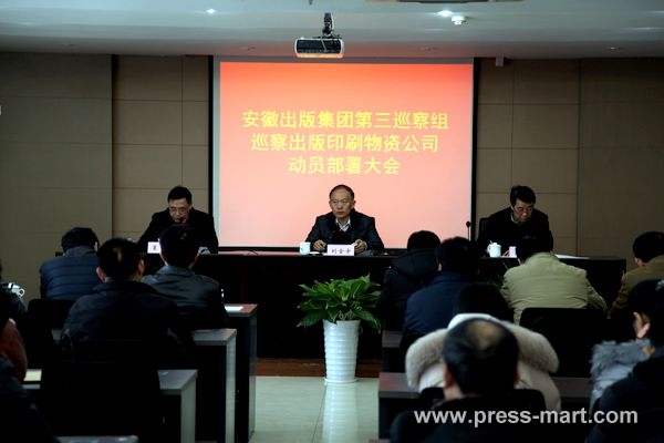 1月(yuè)5日上(shàng)午,安徽出版集團第三巡察組召開(kāi)巡察安徽出版印刷物(wù)資有限公司動員(yuán)部署大會(huì),安徽出版集團副總經理、第三巡察組組長(cháng)劉金宇等一(yī)行6人出席會(huì)議。動員(yuán)部署大會(huì)由公司支部書記夏屹主持。印刷物(wù)資公司本部全體成員(yuán)、時代物(wù)資中層副職以上(shàng)幹部等參加了會(huì)議。
