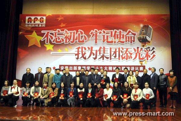 為(wèi)深入學習宣傳貫徹黨的十九大精神,推動黨的十九大精神大學習、大宣傳、大培訓、大調研、大落實, 1月(yuè)16日下(xià)午,“不忘初心,牢記使命——我為(wèi)集團添光(guāng)彩”安徽出版集團學習十九大精神主題演講比賽決賽熱烈舉行。安徽教育出版社4名參賽者經過緊張、激烈的比拼,從(cóng)進入決賽的28名參賽者中脫穎而出、喜獲佳績:吉利、姚麗2位同志(zhì)均以超過90分的優異成績榮獲二等獎,朱礬榮獲三等獎,劉靜(jìng)獲得優秀獎。此外,安徽教育社還(hái)榮獲最佳組織獎。