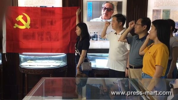 紀念館内,全體同志(zhì)面對黨旗莊嚴宣誓,重溫入黨誓詞,牢記曆史使命。大家表示要牢記出版使命,不忘初心,堅守信仰,為(wèi)出版事(shì)業(yè)作出自(zì)己應有的貢獻。